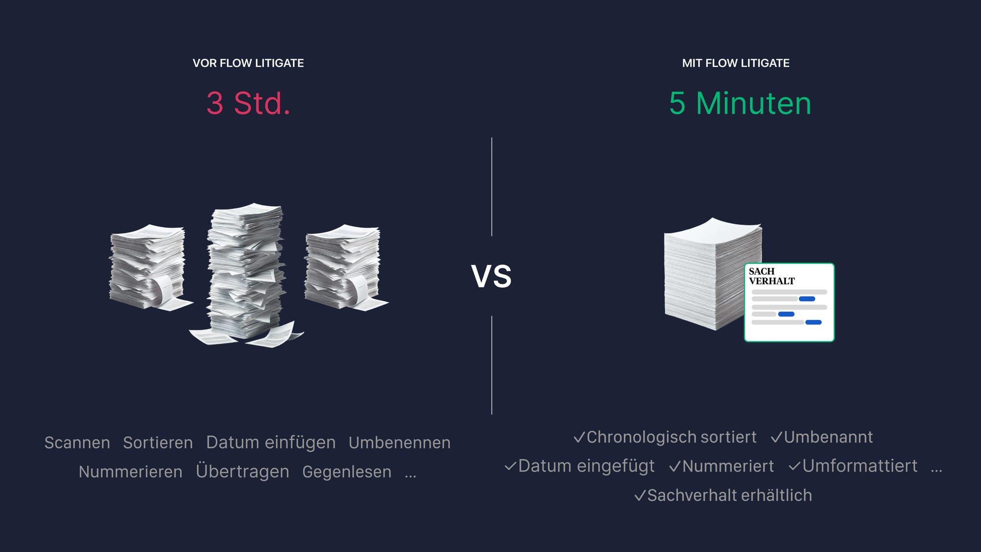 Mit Flow Litigate ist die Zeitverschwendung definitiv vorbei! Sie müssen nur die Dokumente hochladen und los geht’s!
