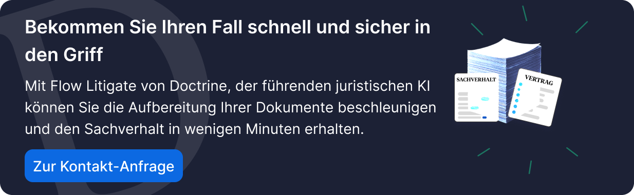 Optimieren Sie die Aufbereitung Ihrer Fälle und erhalten Sie unter wenigen Minuten einen nachprüfbaren Sachverhalt mit Doctrine Flow Litigate.